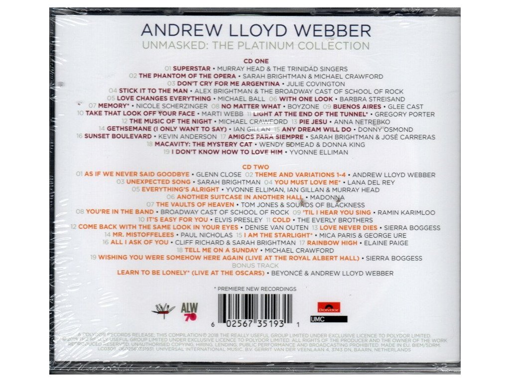 Andrew Lloyd Webber - Unmasked: The Platinum Collection 2 CD